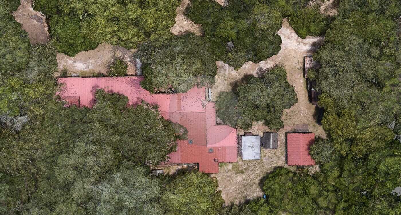 Comprehensive digital documentation of the Moseley Homestead was carried out using 3D laser scanning, high-resolution imaging, and aerial drone survey to capture the property’s architecture, landscape, and material details with exceptional precision. These techniques produced accurate models and measured drawings that support understanding of the site’s structural condition, construction methods, and conservation needs.