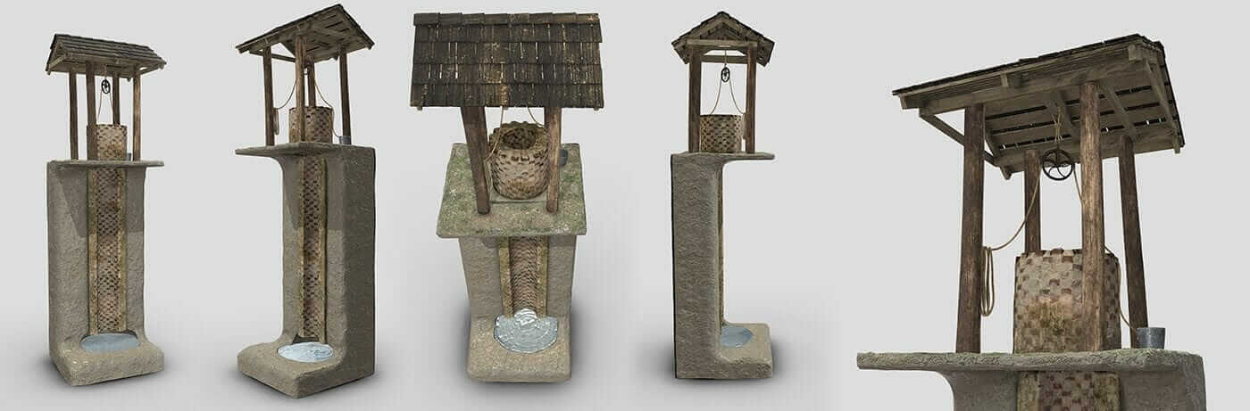 3D model reveal cross-section view showing construction methods for the hand-dug, brick-lined well