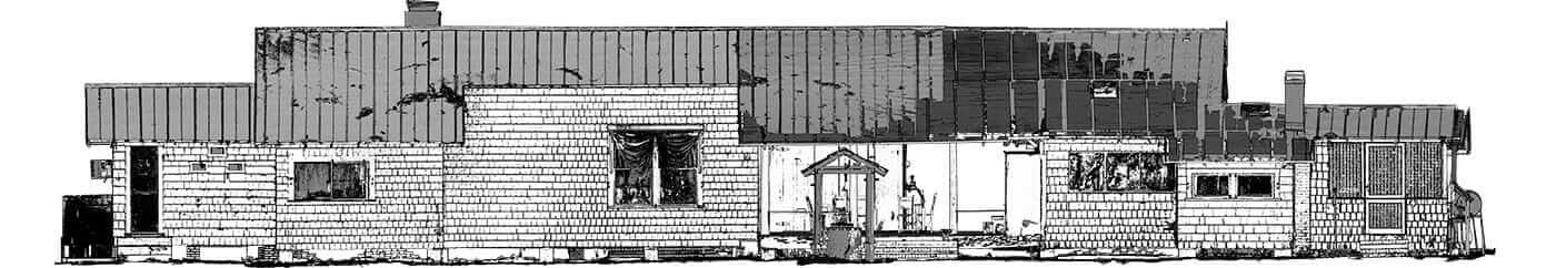 This main home structure consists of three separate units arranged in a modified dog-trot style, designed to optimize the Florida climate. The primary living space features the Palm, a spacious living room with an exposed scissor-jointed ceiling and roof. The Palm is well-known for its Palmetto fiber wall covering. Other rooms include the Snug, which functions as a library, den, and office, and the Retreat, serving as a bedroom and bath. The Cuckoo is located to the south of the living area and is a separate room used today as a bedroom with an attached bath. The third section of The Nest comprises a dining room, a kitchen with a small nook, and the Lazarette, a storage and washing area. All sections of The Nest are connected by porches, breezeways, or halls.